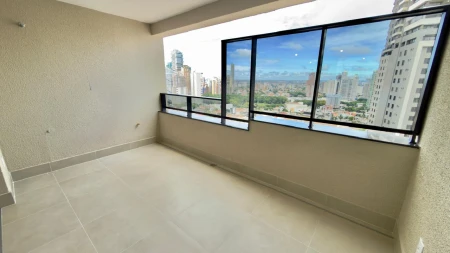 Apartamento repleto em armários de madeira de lei, voltado para a Praça da T-25, quartos com ar condicionado, 3 vagas de garagem