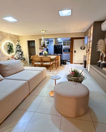 110 m² Andar baixo Montado em armários 3 quartos / 1 suíte Sala 2 ambientes Lavabo Cozinha ampla 2 vagas Escaninho Salão de festas