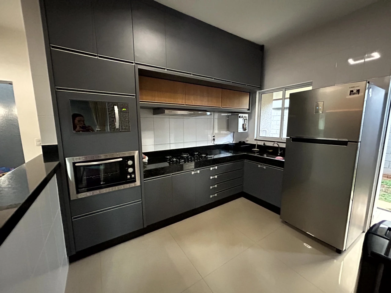 Condominio oferece lazer, casa está completa em armários planejados e possui um projeto da área externa.
