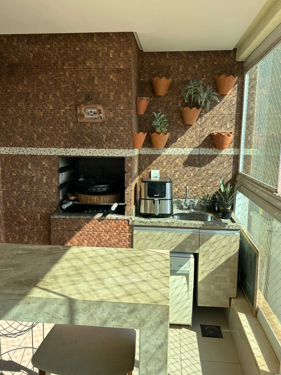 Sacada com churrasqueira á carvão, nascente, rico em armários, andar alto, condomínio tem lazer completo e portaria 24h.