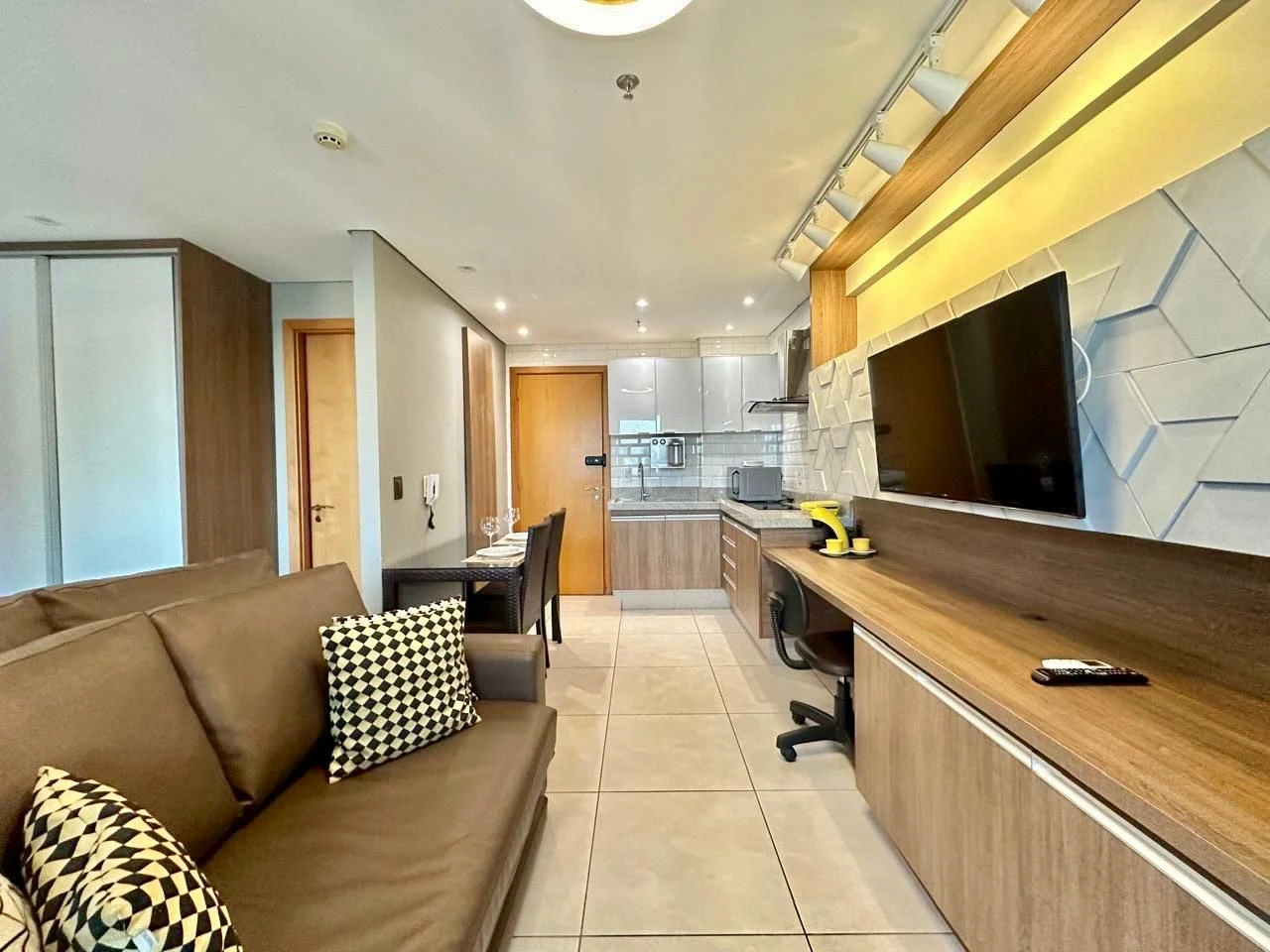 - 39 m² de área construída - 1 quarto / 1 suíte - 1 vaga de garagem individual - 1 suíte, Andar alto, Mobiliado, Aceita Airbnb - Avenida E próximo ao Shopping Flamboyant - Condomínio: R$ 400,00 - R$ 498.000,00