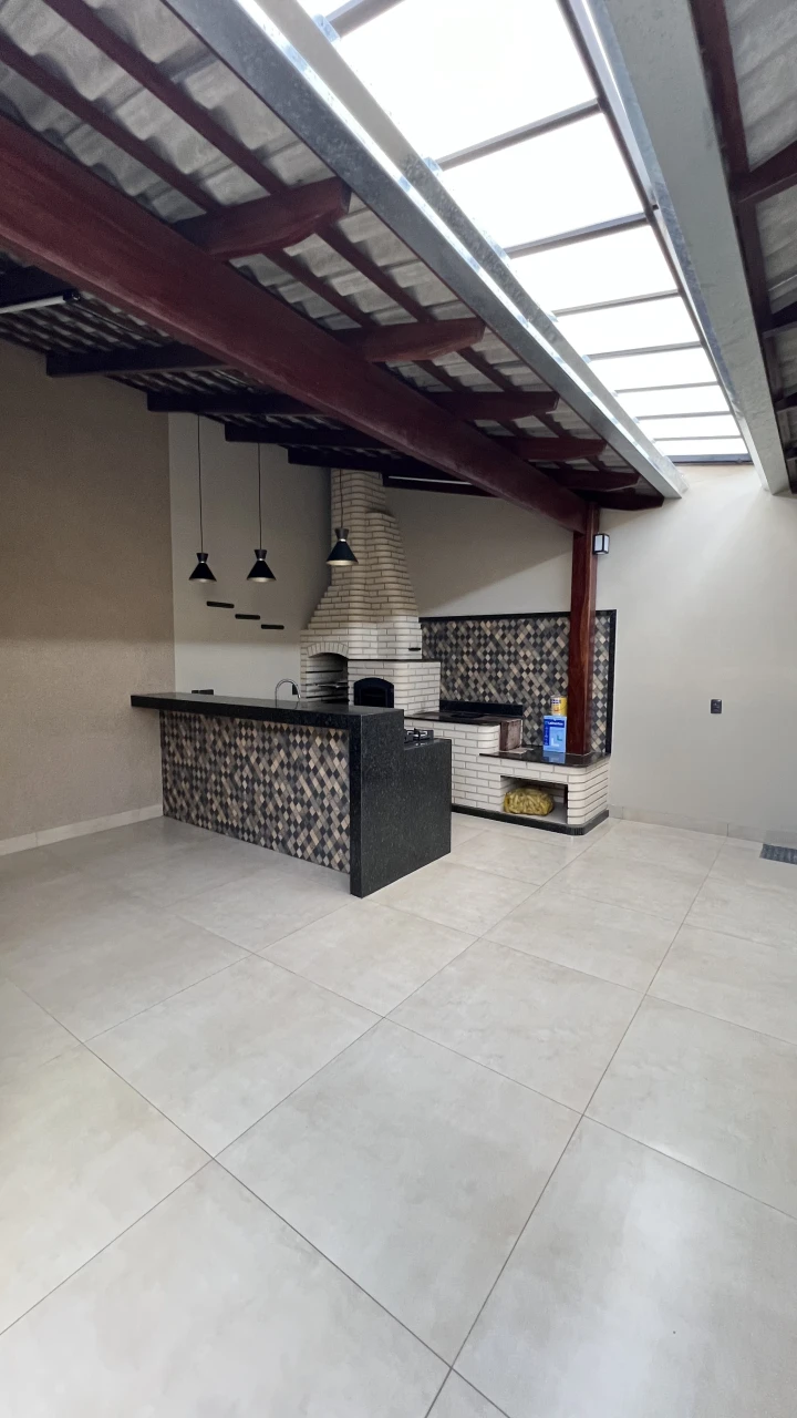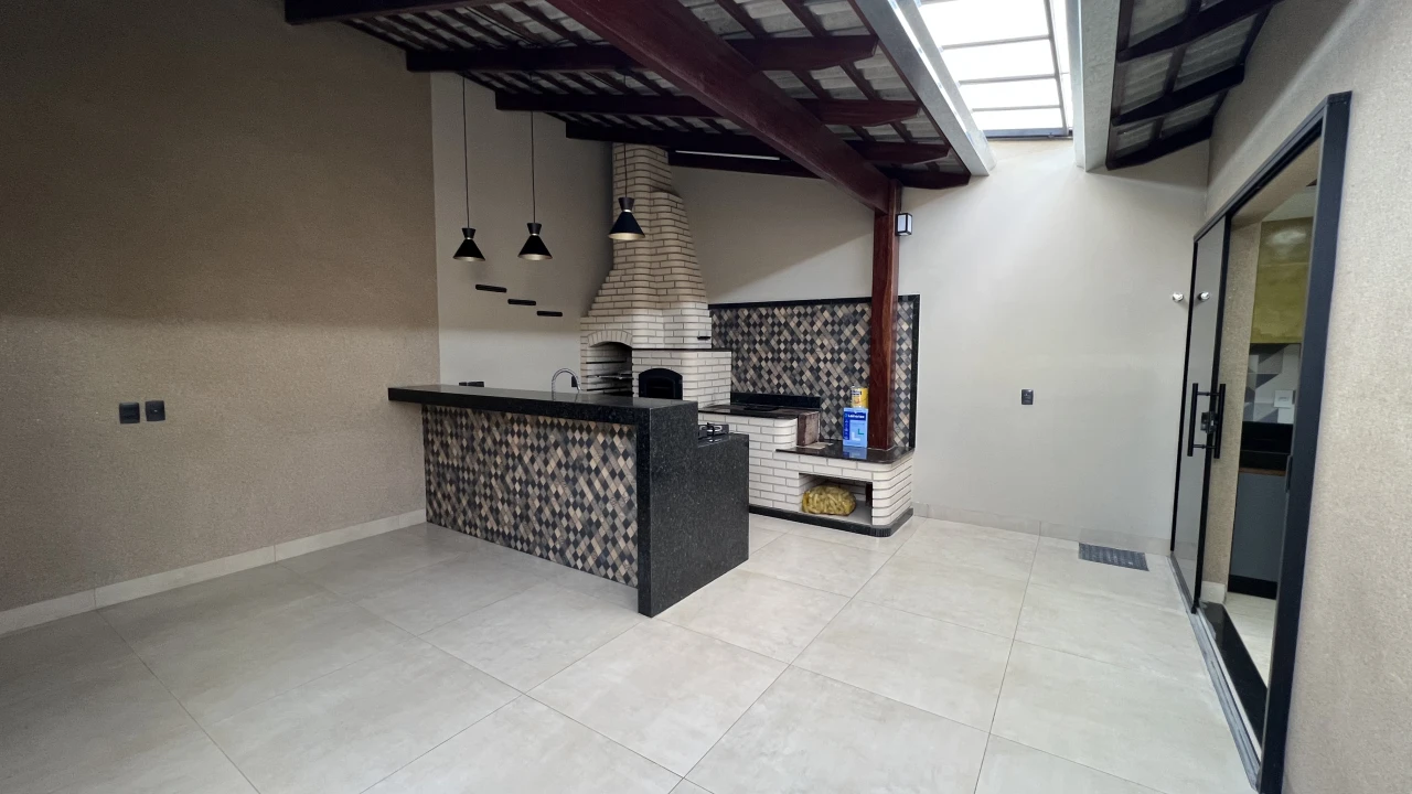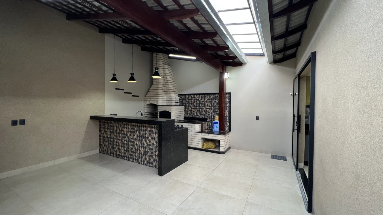 Imóvel com acabamento em porcelanato de alto padrão, possuindo uma suíte master, jardim, churrasqueira e espaço gourmet para momentos de lazer.