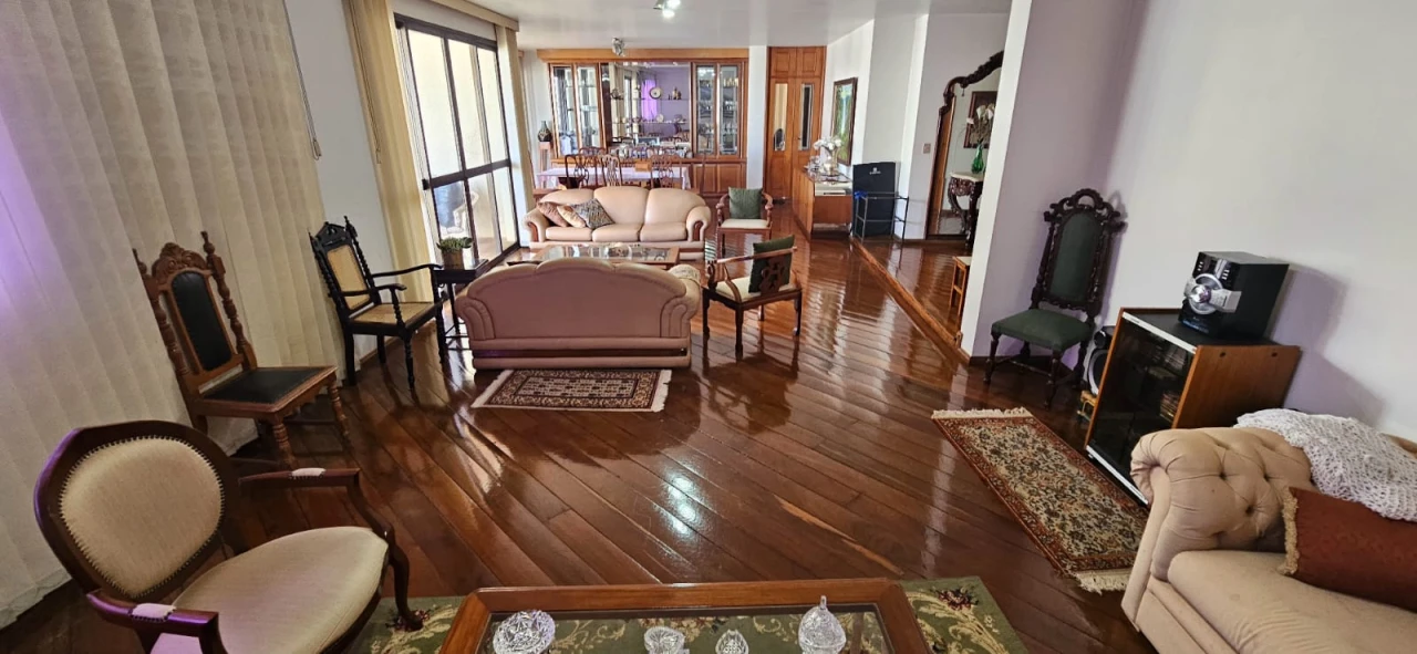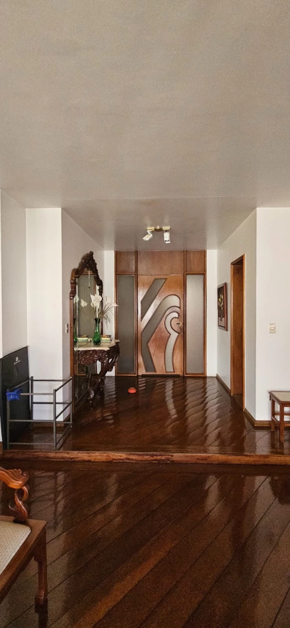 Apartamento alto padrão no Setor Bueno, uma unidade por andar. Possui 4 suítes, sala ampla com três ambientes, sala de TV, piso em tábua