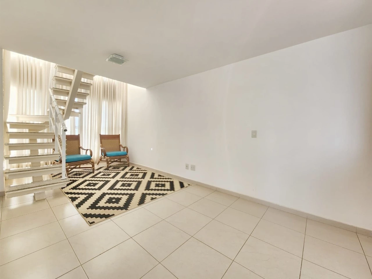 - Cortinas em trilo suíço em todos os quartos e escada