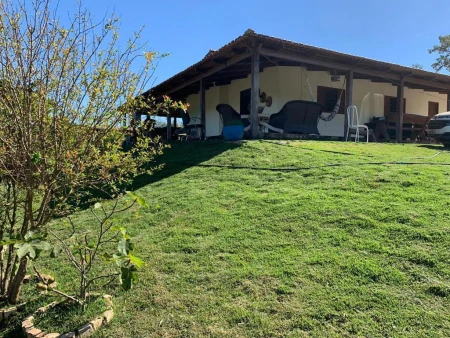 Construída em 2017, a propriedade conta com duas salas, varanda toda forrada em PVC e um poço artesiano. A propriedade é atravessada pelo Rio Caldas