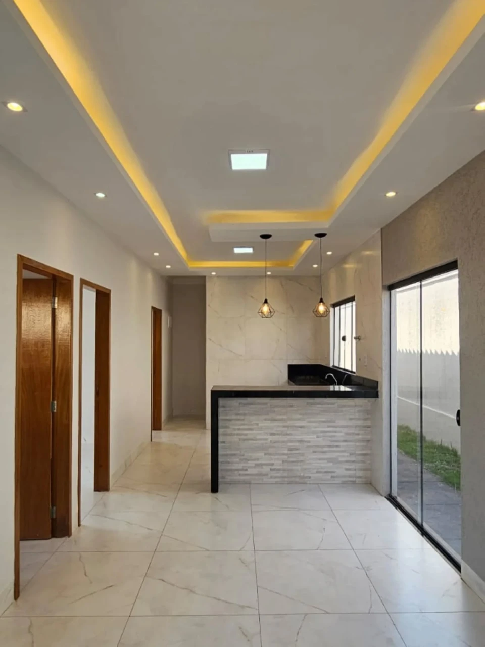 - 200 m² de área total - 81 m² de área construída - 3 quartos / 1 suíte - 2 vagas de garagem - Sala com cozinha americana, Área gourmet e ótimo quintal, Iluminação planejada e área de serviço coberta, Condomínio com playground e área de lazer - próximo do Shopping - Condomínio: R$ 325,00 - R$ 295.000,00