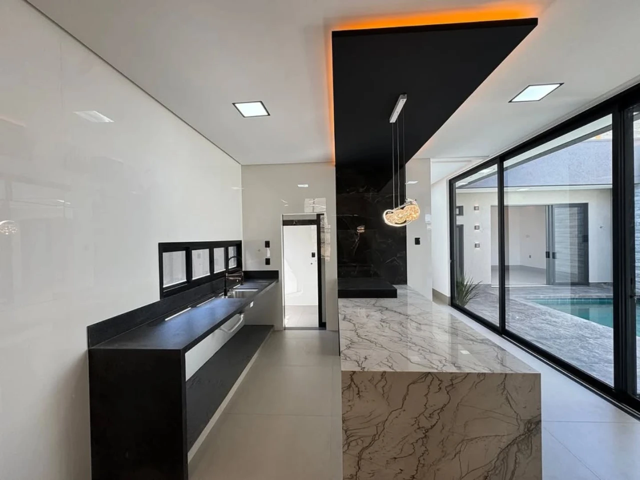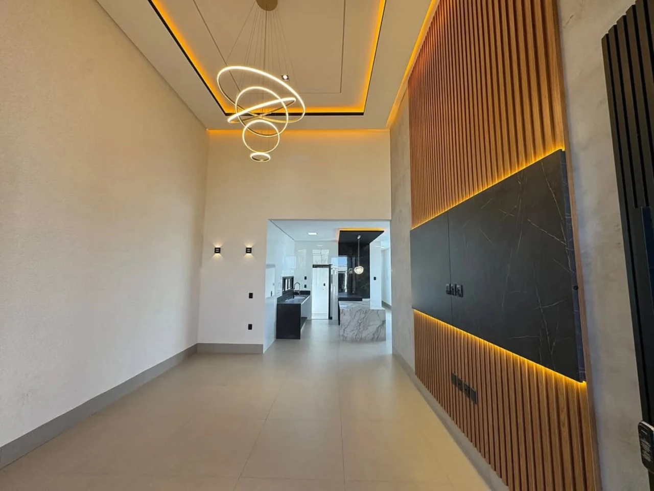 4 suítes plenas, Área gourmet com churrasqueira, Iluminação em LED e acabamento premium, Garagem coberta para 3 veiculos