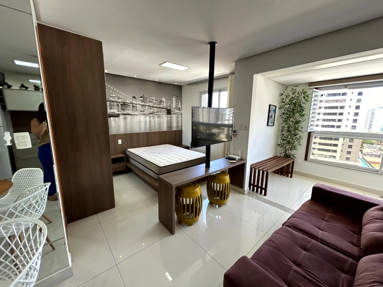 Completo em armários, eletrodomésticos, projeto iluminotecnico, ar condicionado, andar intermediário, sacada com cortina de vidro