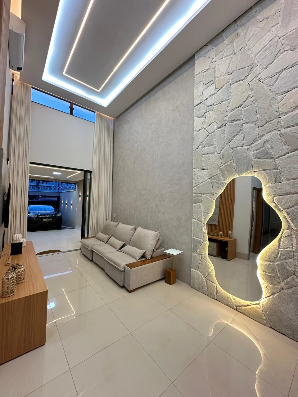 Casa nova com pé direito alto, banheira de hidromassagem, área gourmet, rico em armários e projeto luminotécnico