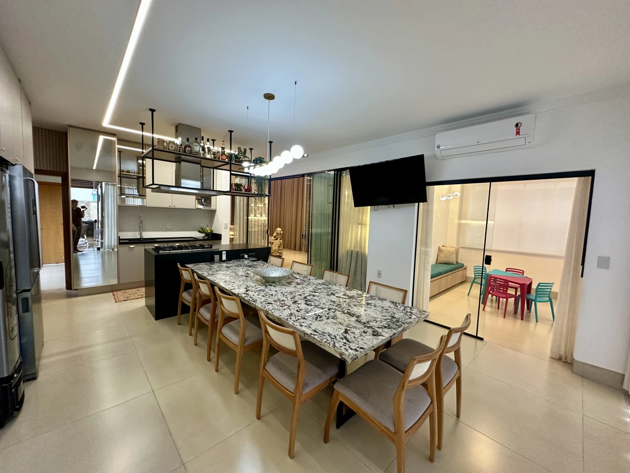 Cozinha com Ilha central, integrada à varanda gourmet, Brinquedoteca/escritório, Piscina aquecida e com cascata, Possibilidade de venda mobiliado