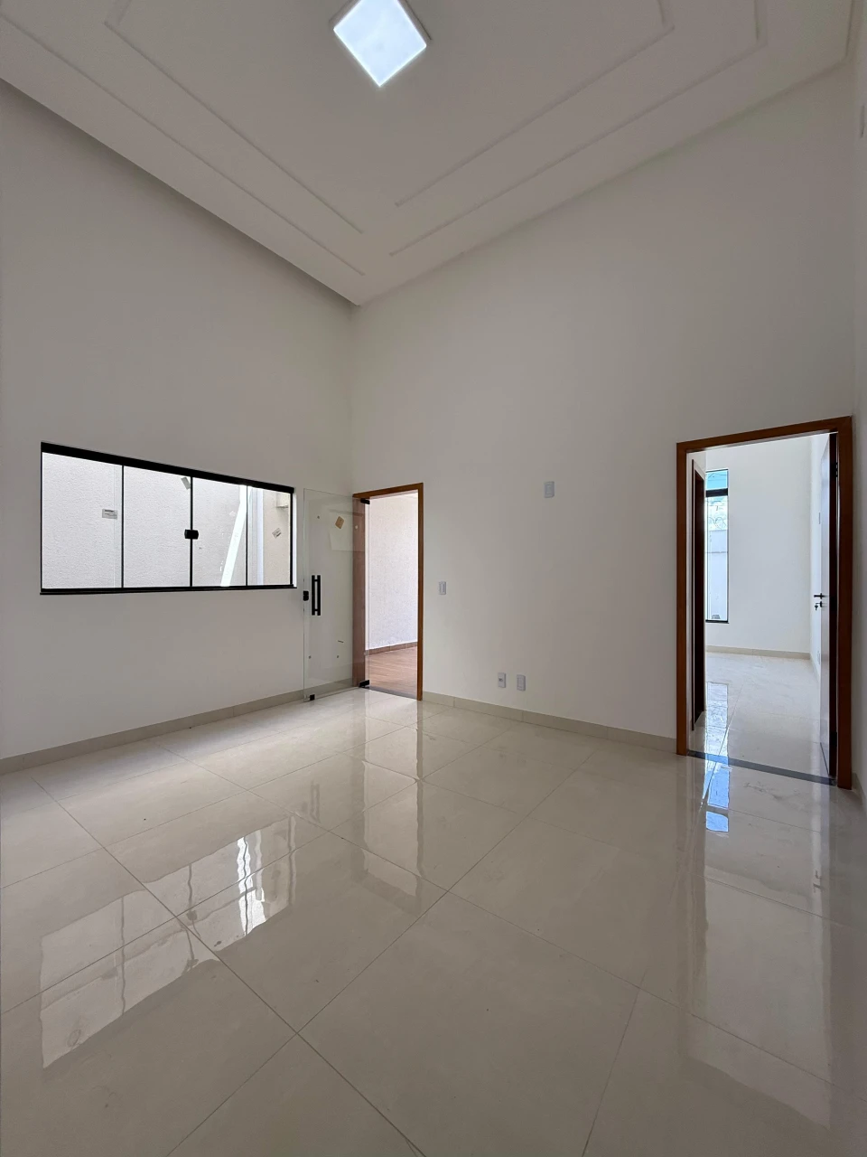 2 vagas de garagem sendo uma coberta, Pé direito alto, toda no porcelanato, roda pé embutido, banheiro com nicho no bege bahia,