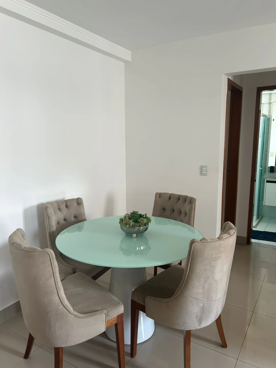 Armários planejados na cozinha, fica mobília como sofá e mesa com 4 cadeiras, último andar