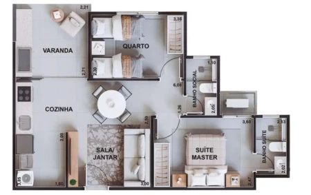 - 56 m² de área privativa - 2 quartos - 1 vaga de garagem individual - fácil acesso à região do Parque Cascavel, avenida T-9, região do Eldorado - Condomínio: R$ 300,00 - R$ 228.000,00