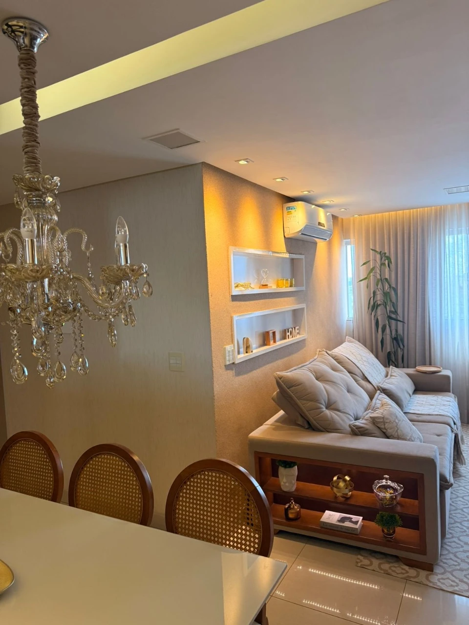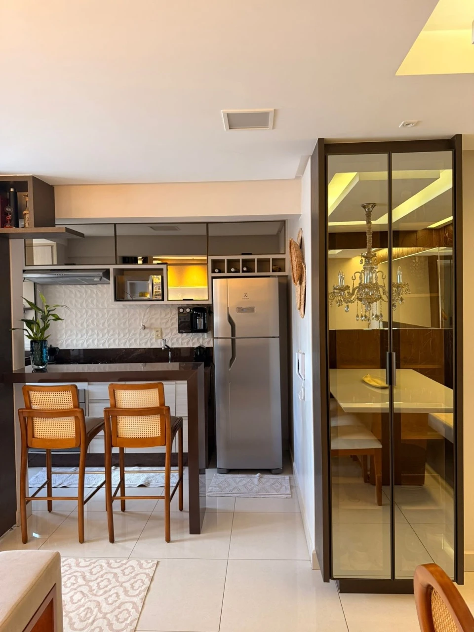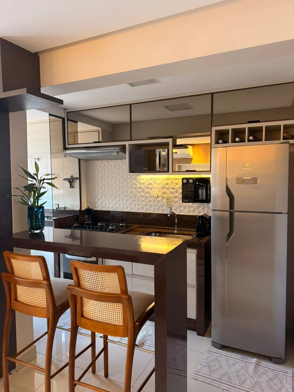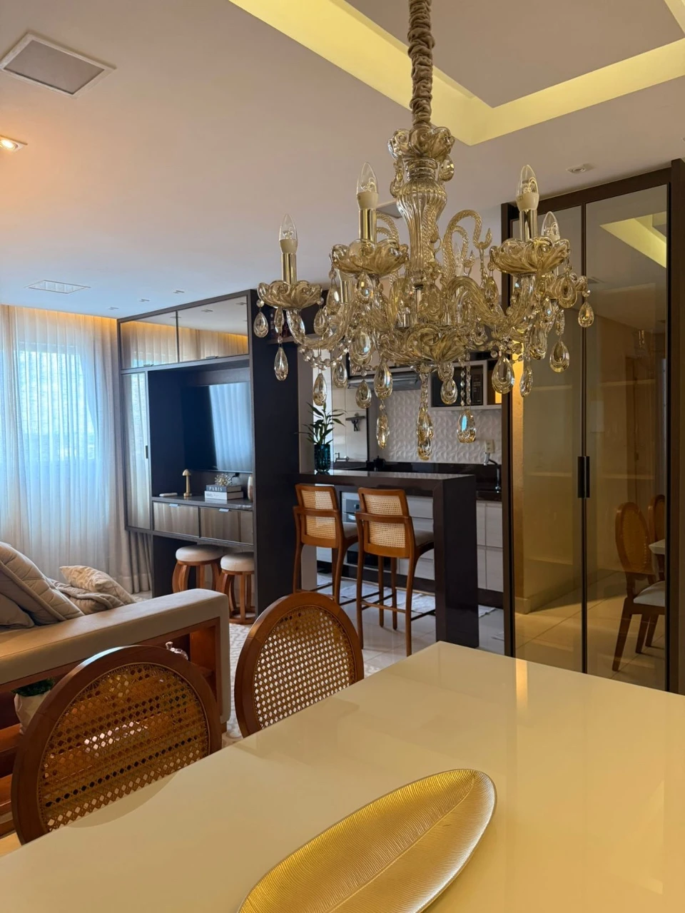 - Diferenciais: Imóvel 100% mobiliado, vendido de porteira fechada, todos os ambientes com planejados, (cozinha com bebedouro, microondas, sugar, cooktop, forno elétrico, lava e seca, geladeira de duas portas), (sala com sofá de 4 lugares, ar condicionado, mesa de 6 lugares com canto alemão, lustre, 2 cadeiras, 2 bancadas, cristaleira), (quarto 1 - mesa planejada com cadeira de escritório), (quarto 2 - cama de casal, ar condicionado), (banheiros com blindex), fechadura digital.